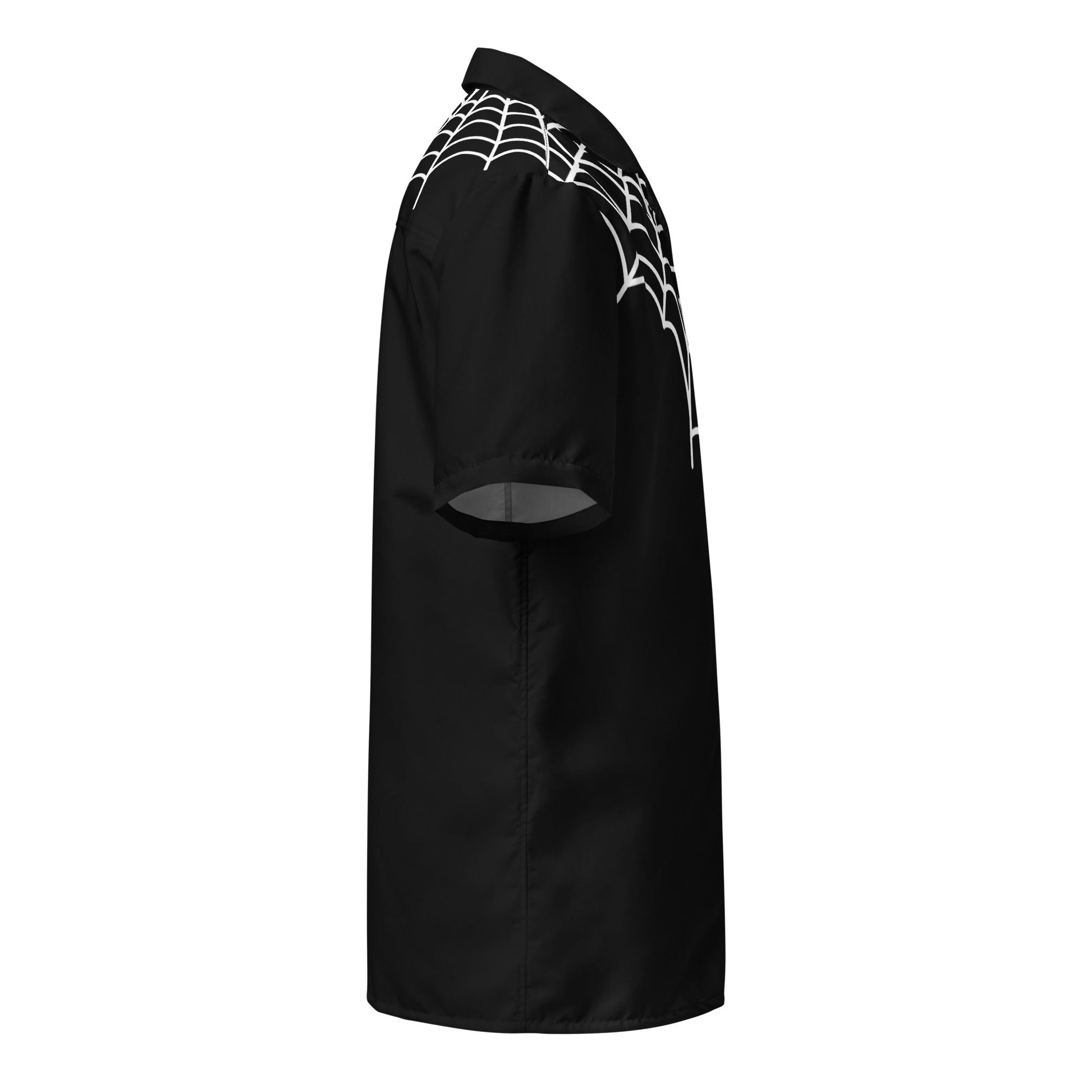 Get ready to weave some fashion magic with our newest arrival, the spiderweb button down shirt! Complete with a white spiderweb design on the shoulders and back, this shirt will become your go-to favorite in no time.