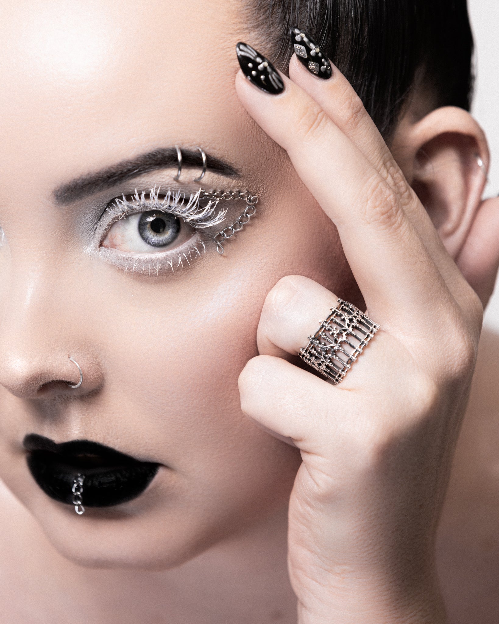 Adjustable from sizes 5–11, it’s ideal for corporate goth outfits, Renaissance fairs, or adding a touch of dark elegance to your everyday look. Pair with other pieces from the Cult Collection for the ultimate spooky-chic vibe.