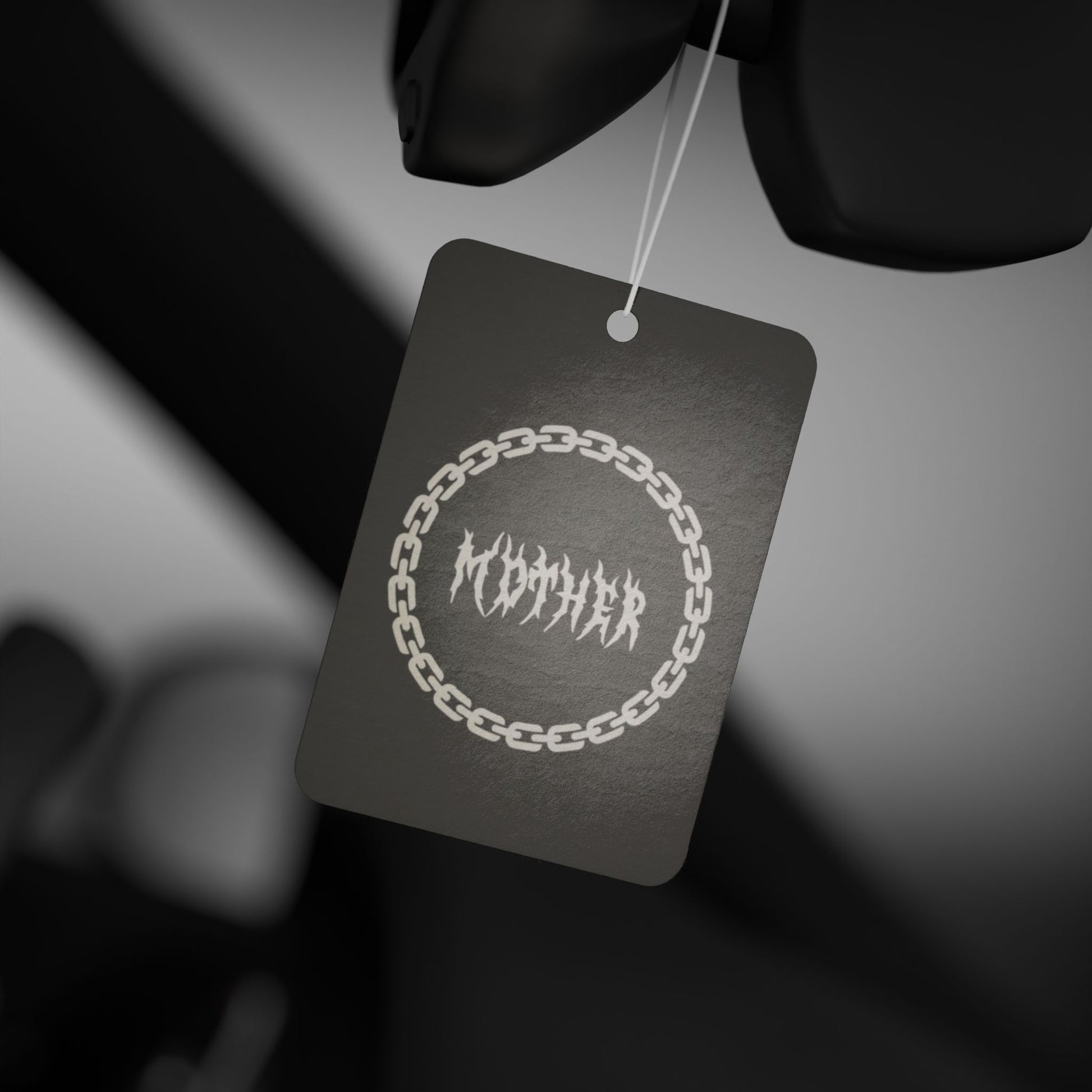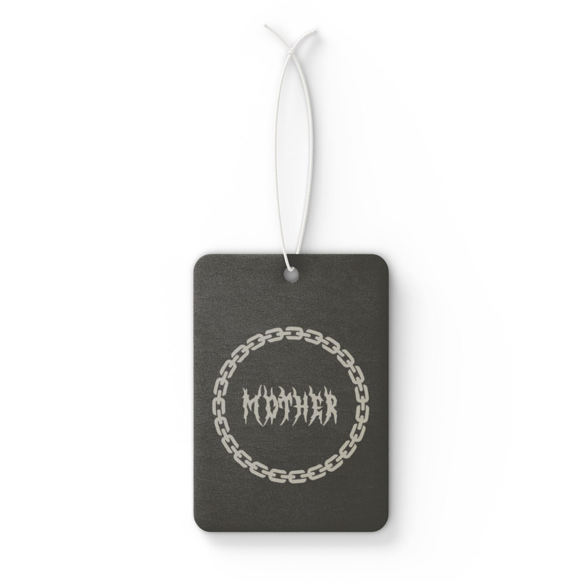 You're not like a regular mom, your a spooky mom! This cool car air freshener comes in dark gray with our chained mother logo. Available in three captivating scents: Pine, New Car, and Black Ice. Designed for both functionality and style, this air freshener features an all-over print that enhances your car's interior while delivering long-lasting fragrance. Choose your favorite scent and enjoy a fresh, pleasant atmosphere on every ride.