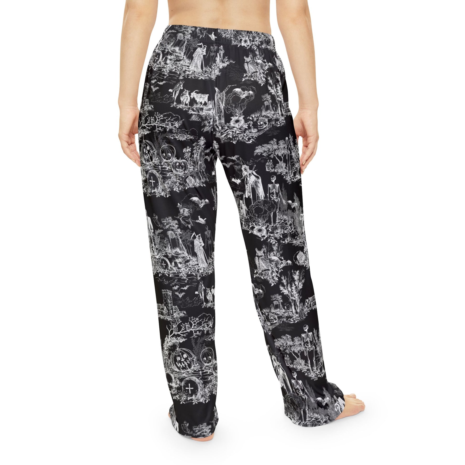 The classic toile print is not stranger to a pajama, BUT how about a HALLOWEEN toile? This awesome print features classic style vignettes of different spooky characters all over in black and white. Here to add style on luxurious comfort, these pajama pants are made with 100% brushed polyester that feels extra cozy to slip into. The soft and stretchy fabric makes it perfect for sleeping or lounging around home while your prints come to life in vivid detail and color for extra style points.