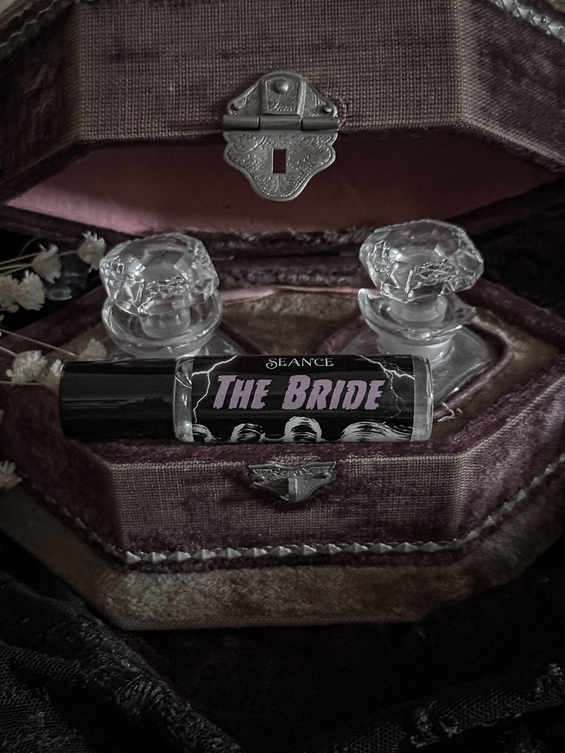 This perfume captures the allure of the Monsters Bride, blending beauty with an eerie darkness. The scent is an intoxicating mix of elegance and danger, where soft lavender notes mixed with black florals floating atop a rich heart of black amber, adding depth and mystery. A hint of powder lingers, creating a seductive and ghostly aura. This fragrance is both sexy and sinister, a perfect embodiment of the hauntingly beautiful and the darkly romantic.