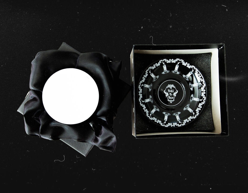 Whether you’re sipping quietly beneath a fogged windowpane or serving guests in your own haunted salon, this piece elevates the moment with ceremonial charm. The saucer rests gently beneath a bed of satin, nestled inside a luxury gift box, ready to enchant.