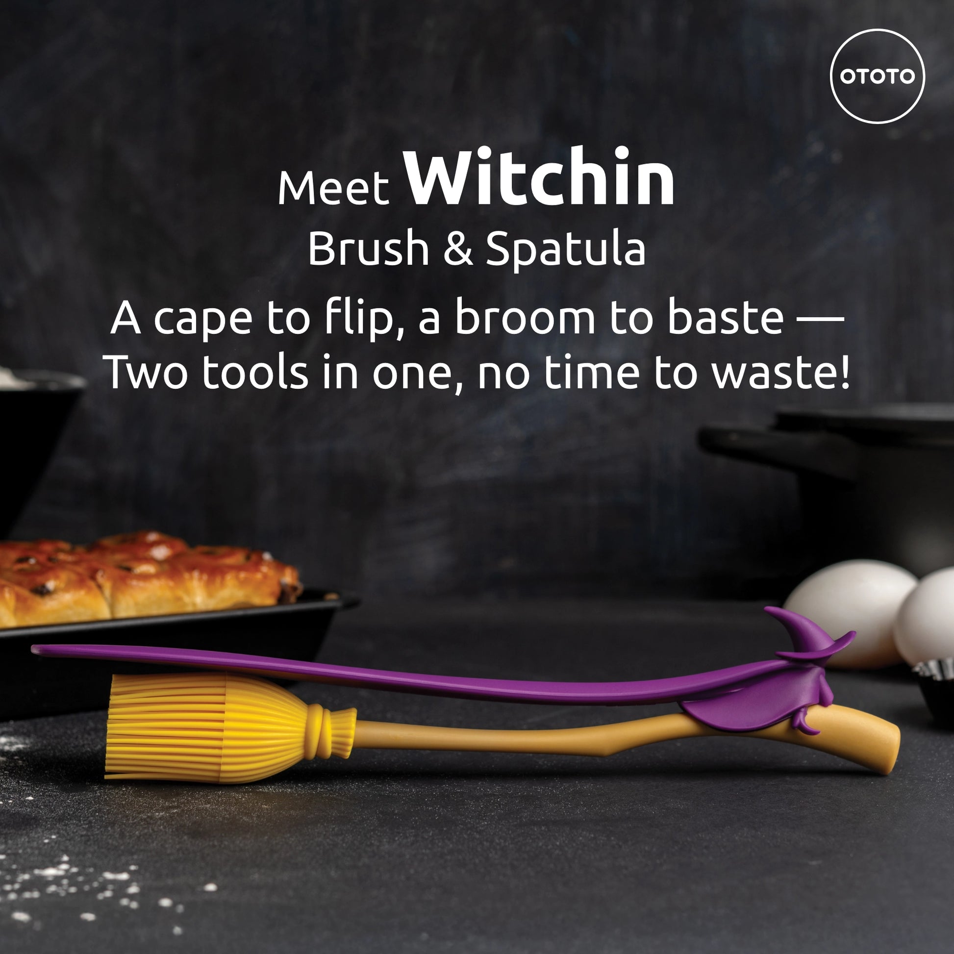 Cast a spell on your cooking routine with Witchin, the enchanting 2-in-1 basting brush for cooking and spatula that brings magical efficiency to your kitchen! This clever witch design features her broomstick as the silicone brush handle and her flowing cape as the heat-resistant spatula. The basting brush side works as your go-to oil brush for cooking, perfect for applying marinades, glazes, and sauces with precision.