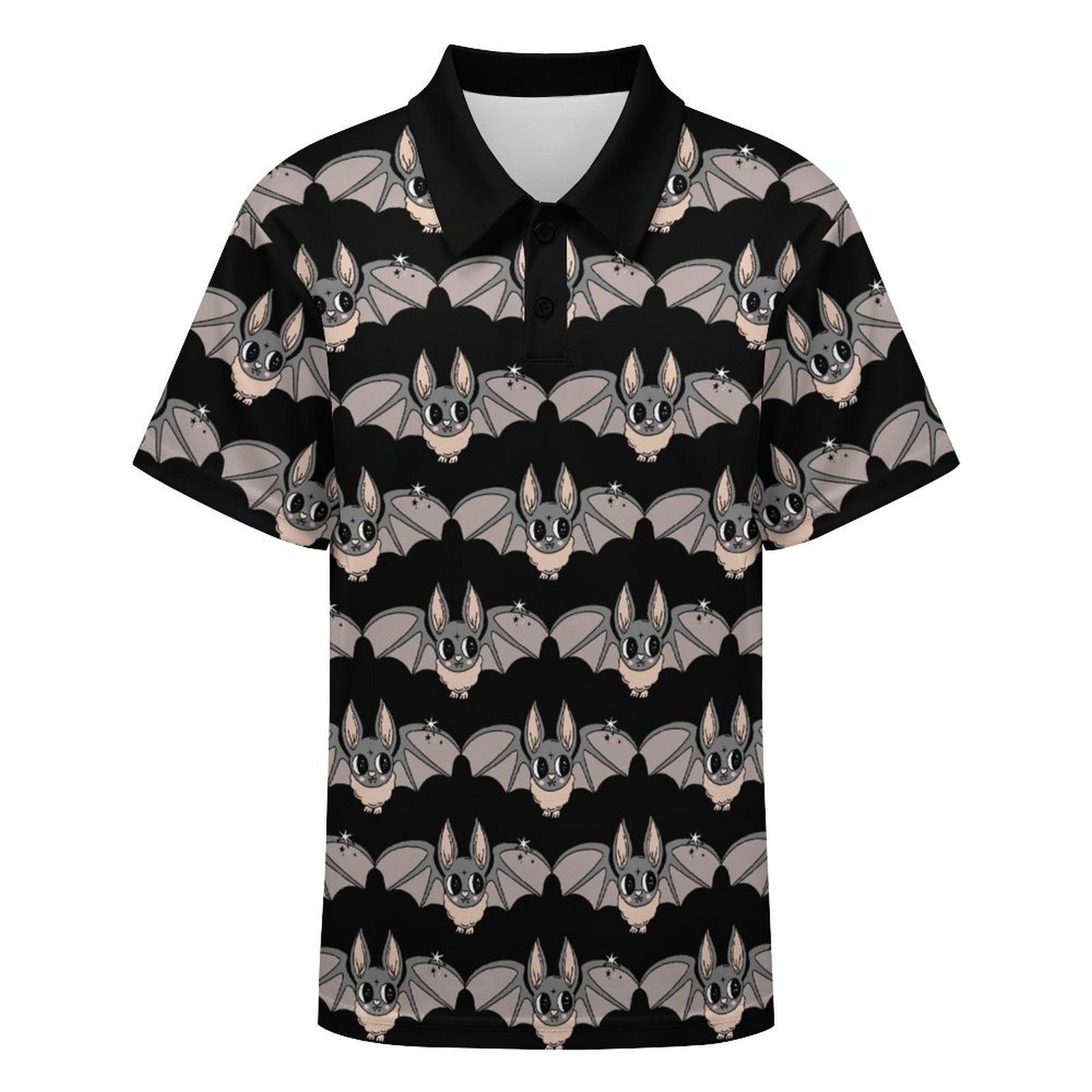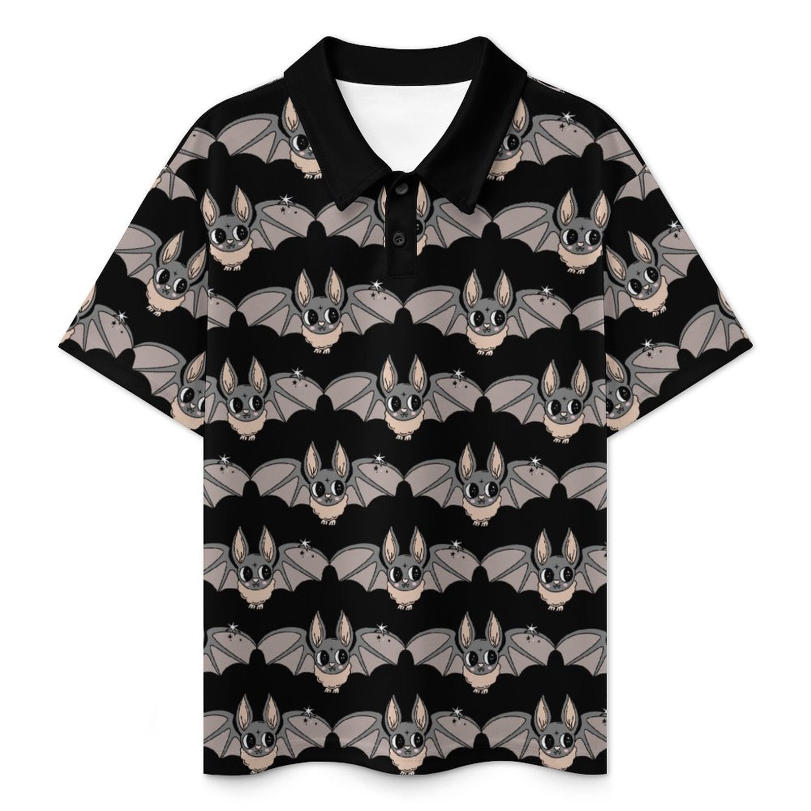 This kids polo is polished but definitely not stuffy. This one features our adorable Cheeky Bat cartoon print all over with a contrasting black collar. These polos are made to order, so please allow up to a month for delivery. If you order additional items, they will be shipped separately.