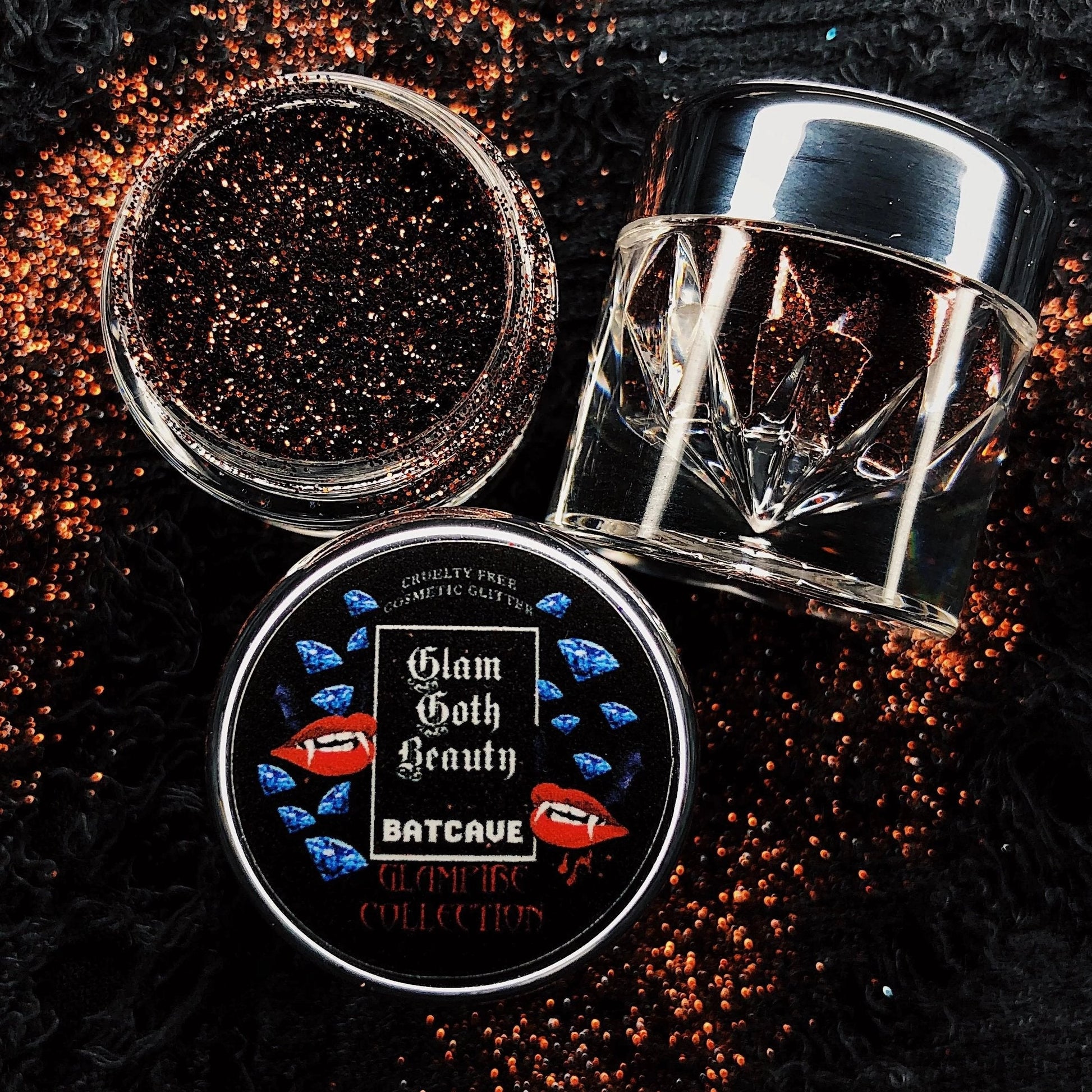 Batcave Glitter Diamonds is super reflective with with a sensual feel with rustic tones of Dark Chocolate and Toasted Chesnuts. Wear this for a sexy date night or a casual afternoon coffee with friends. Batcave is perfect for any occasion and so wearable with any brown smokey eye!