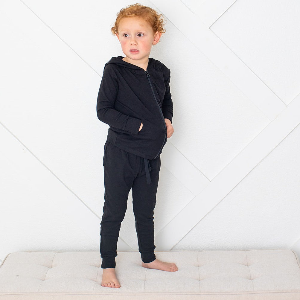 Keep your little one cozy and cute in this Zippered Hoodie. Designed with a fully-lined hood for added warmth and softness. Made from our plush bamboo/cotton blend—3x thicker than our viscose bamboo fabric, perfect to keep your little one warm. The kangaroo pockets are perfect for little hands or treasures, while the relaxed fit makes layering easy and comfy. Ideal for both fun adventures and chill days, this hoodie adds a playful touch to any outfit. Match it with the relaxed fit jogger (sold separately) to complete the adorable look!