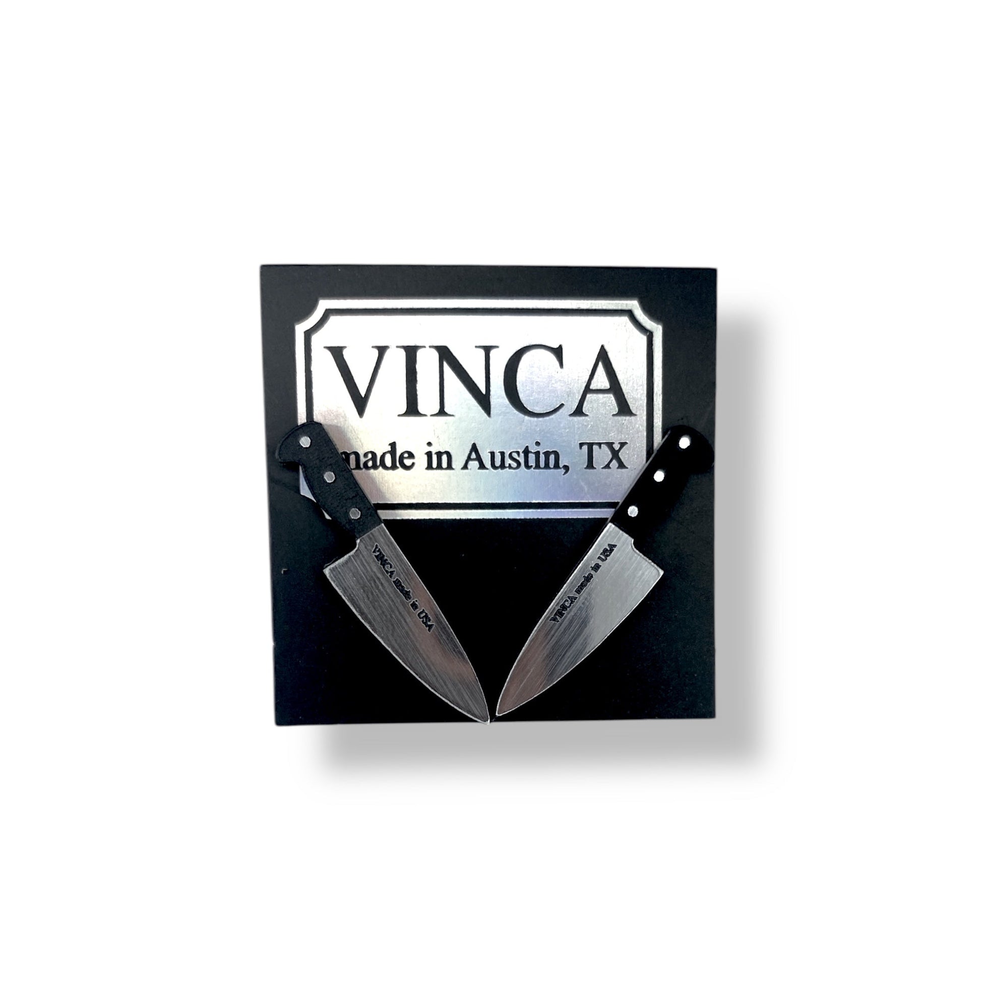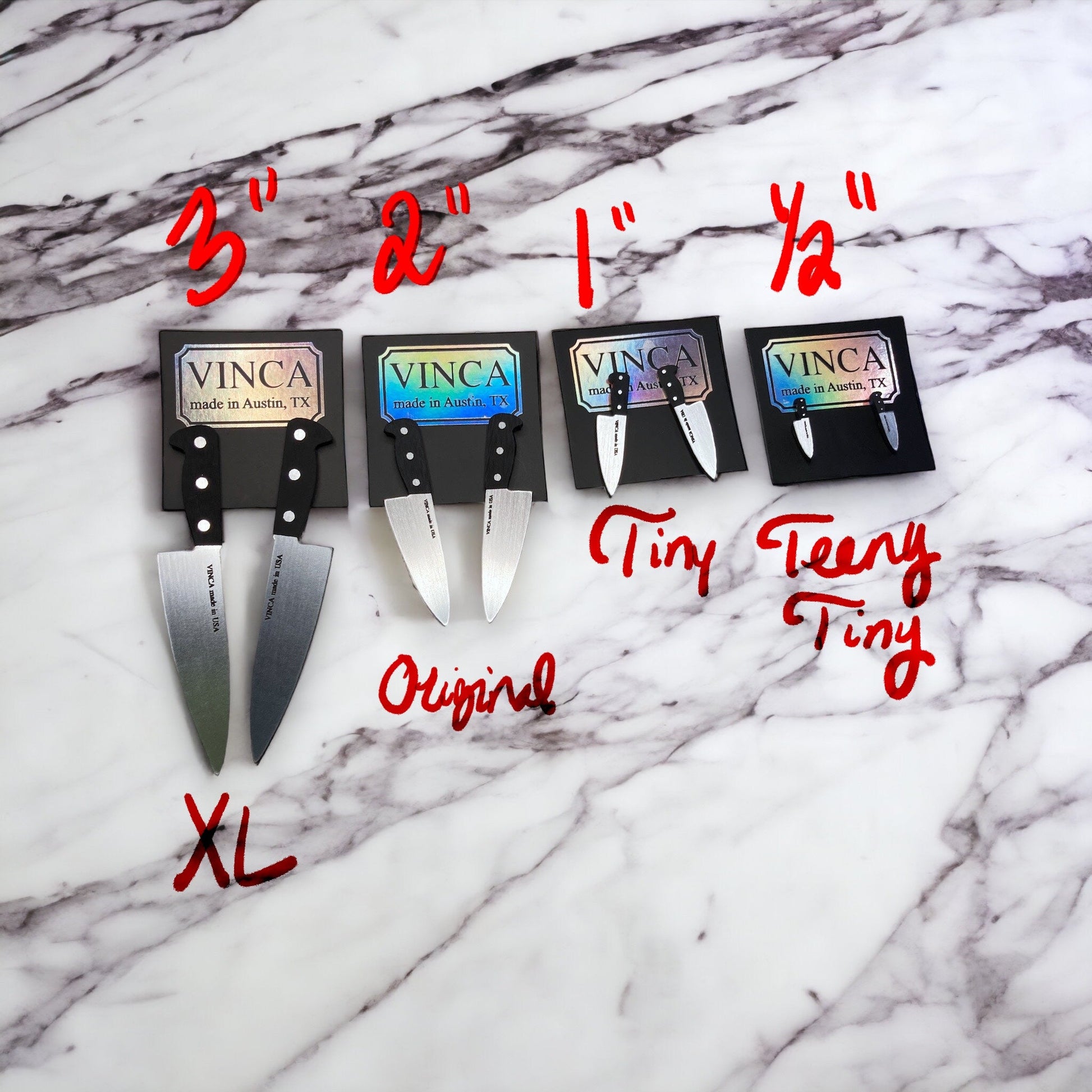 Tiny Chef's Knife earrings are our best seller! If you are looking for a gift for your trendy, best friend, your punk rock boyfriend, or your goth niece, look no further. These knife earrings are the perfect unisex accessory for women and men wanting to add a bit of edge to their ensemble.