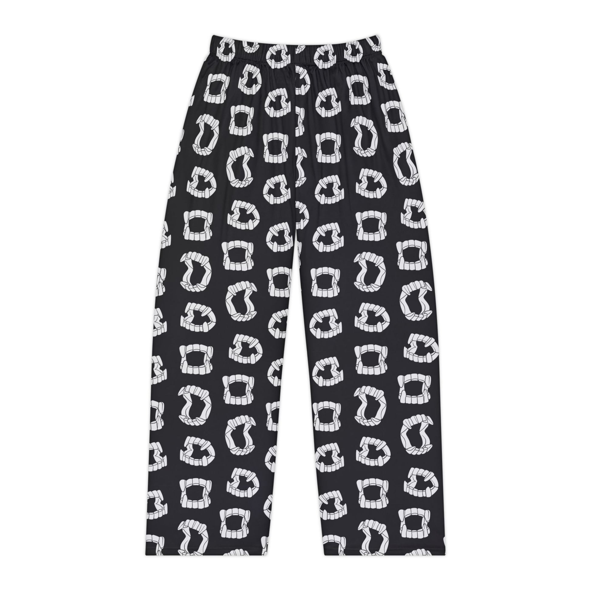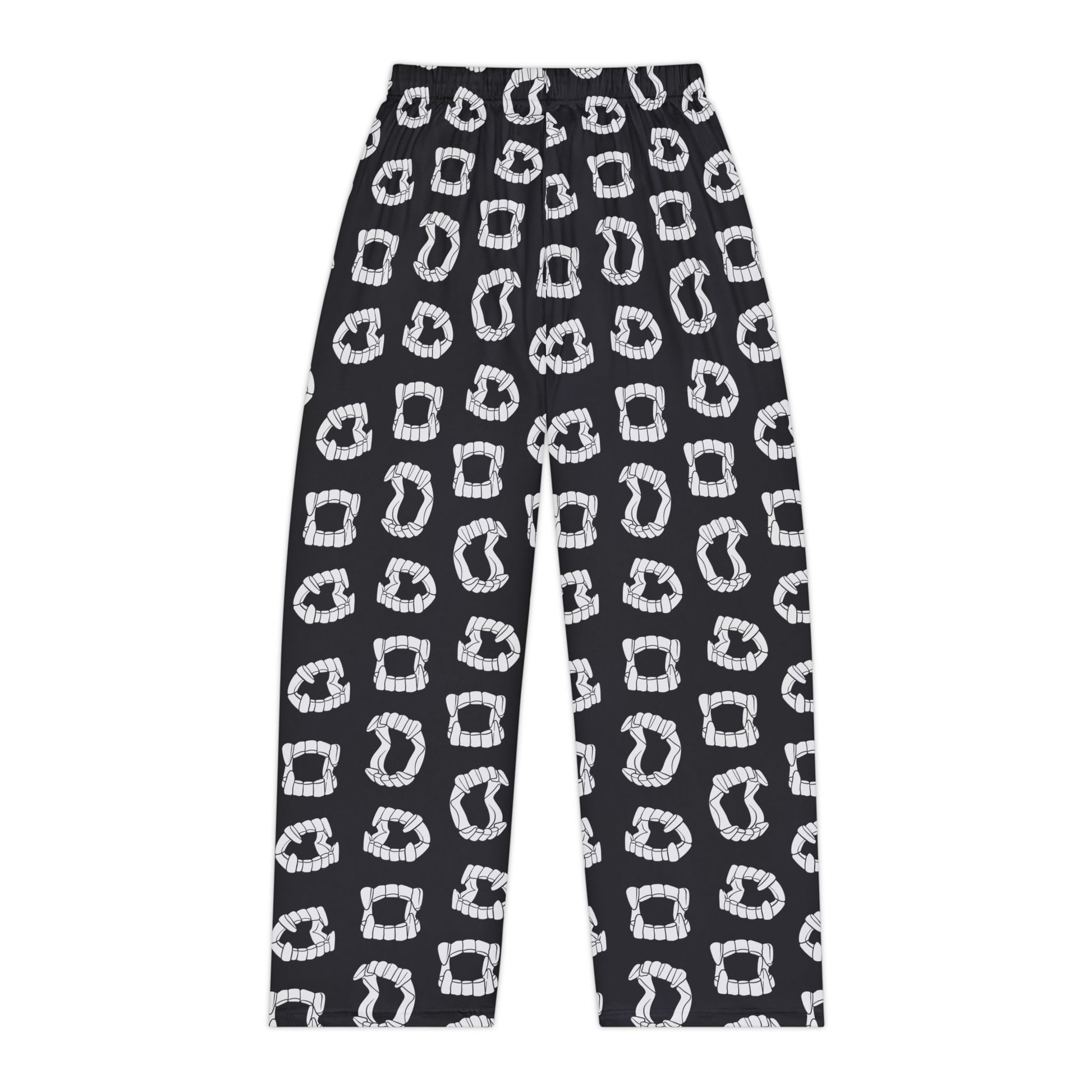 If a vampire comes to your window at bedtime, make sure to let them know you are a fan! Here to add style on luxurious comfort, these black/white vampire teeth printed pajama pants are made with 100% brushed polyester that feels extra cozy to slip into. The soft and stretchy fabric makes it perfect for sleeping or lounging around home while your prints come to life in vivid detail and color for extra style points.