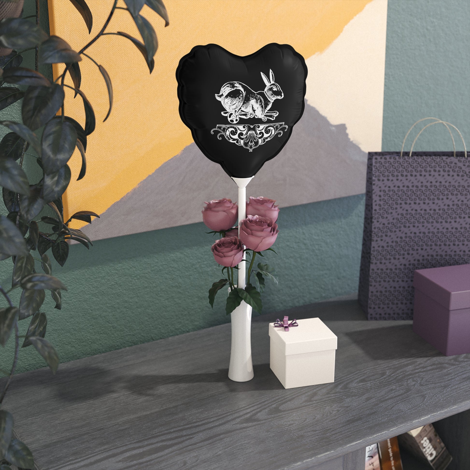 How cute would this little balloon look in your kid's Easter basket? Made with coated mylar, each balloon has a victorian-style bunny toy on the front and a black/white crescent moon pattern on the back.