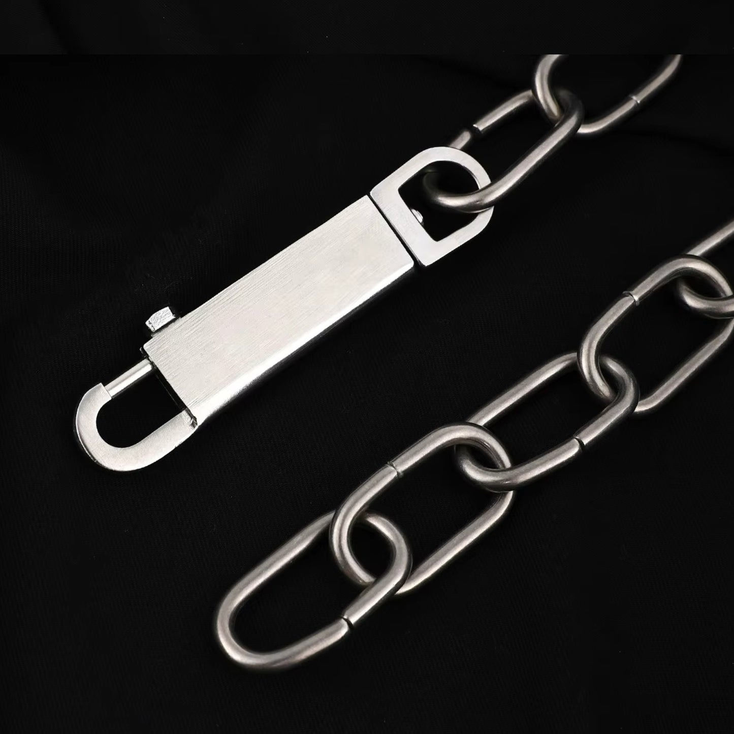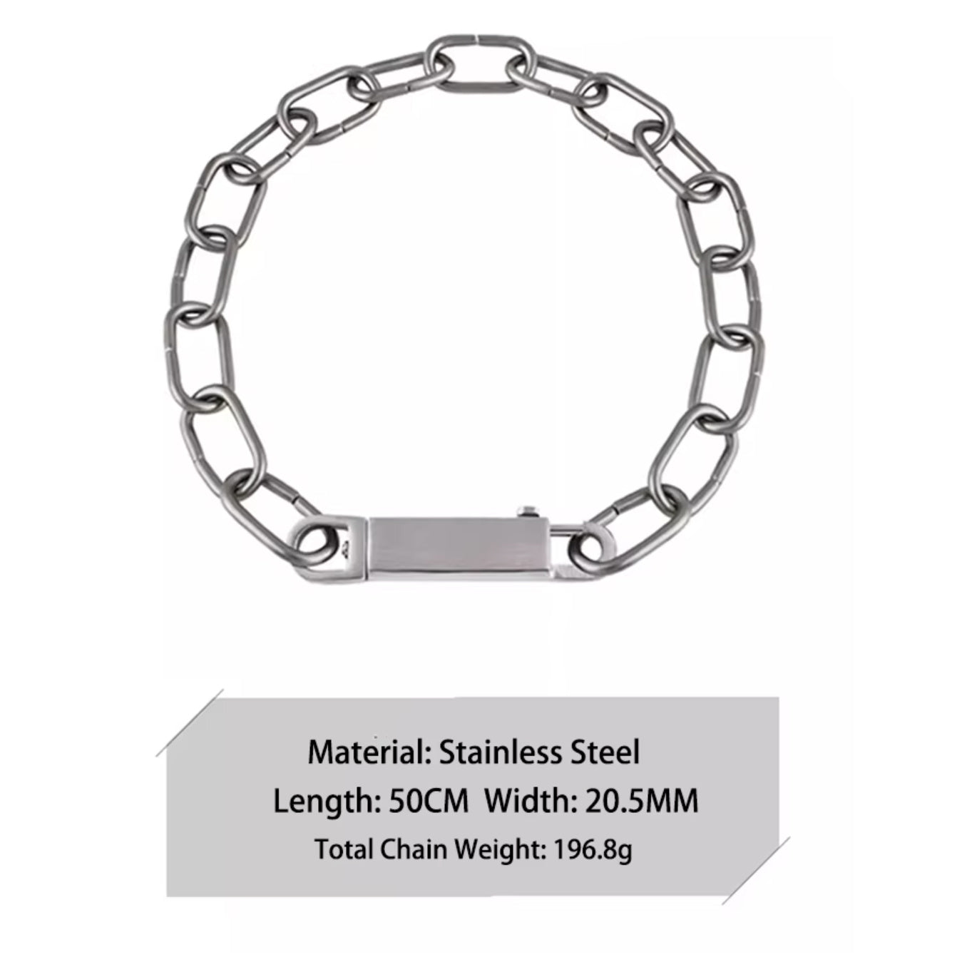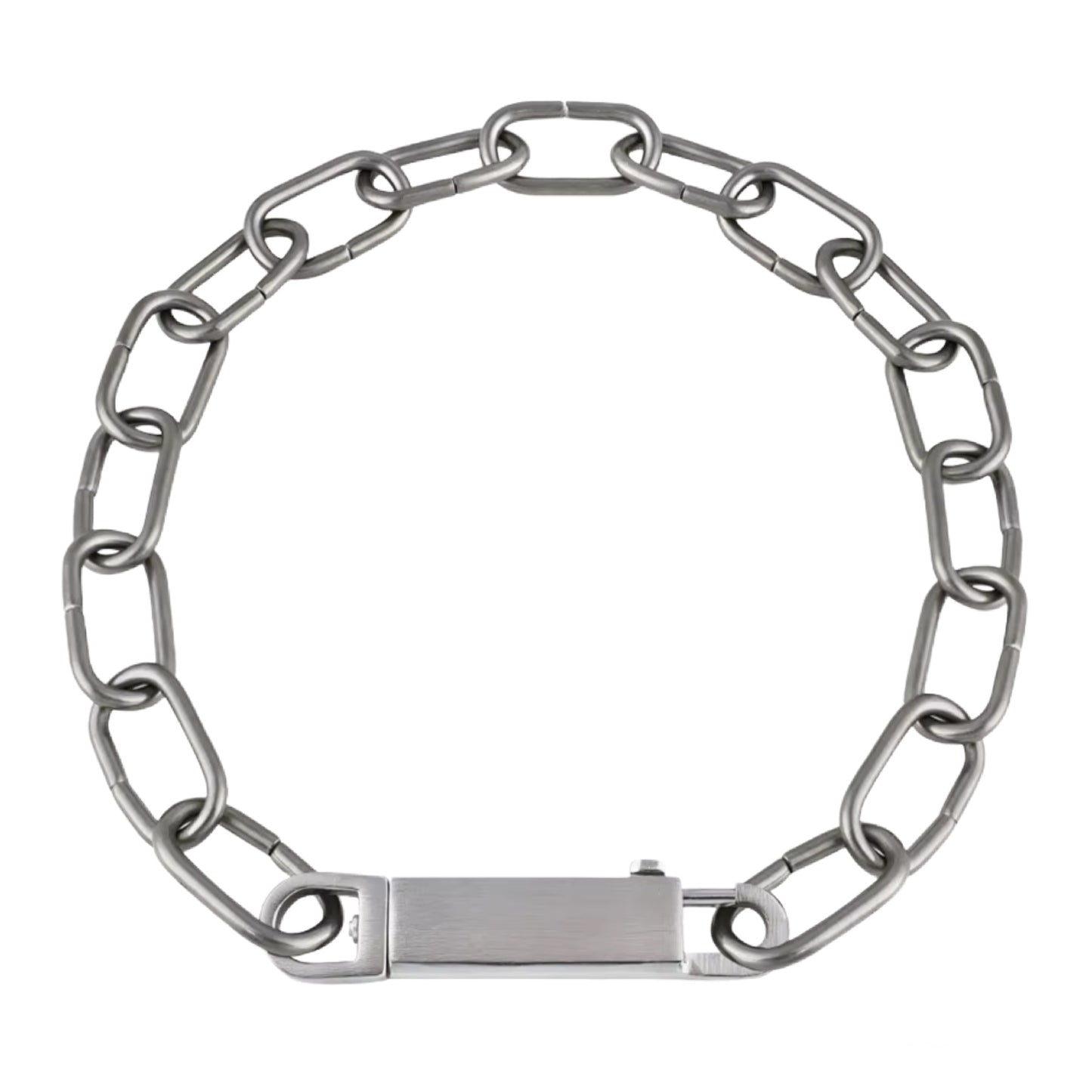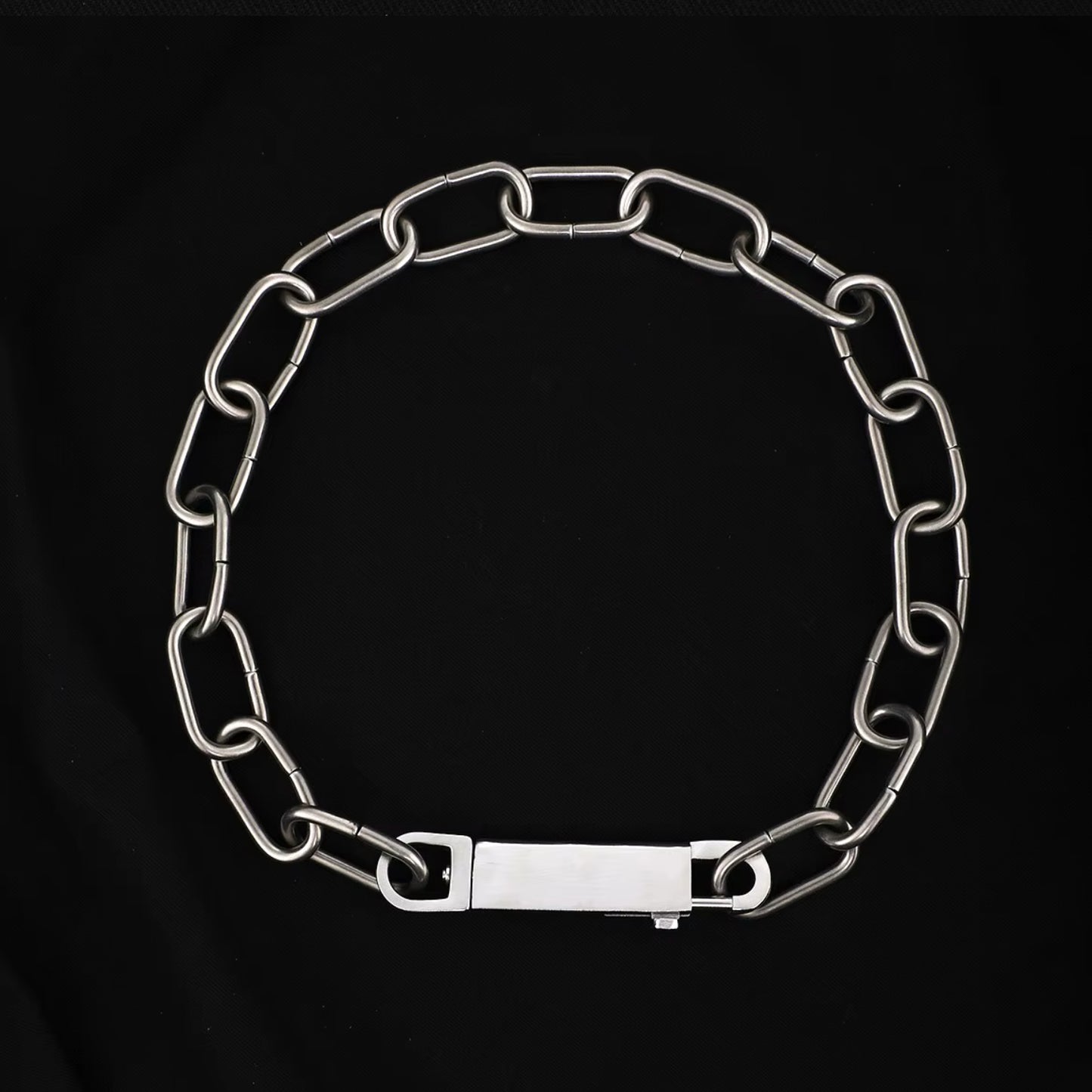 This necklace is just so cool. A mix of high fashion sensibility with the tough freedom of punk and industrial, the Anarcho Chain Necklace is sure to enhance your daily looks. Made of stainless steel but with a matte finish. Can be worn as one loop OR clip the closure closer to the neck for a y-shaped choker look. The chain measure 20".