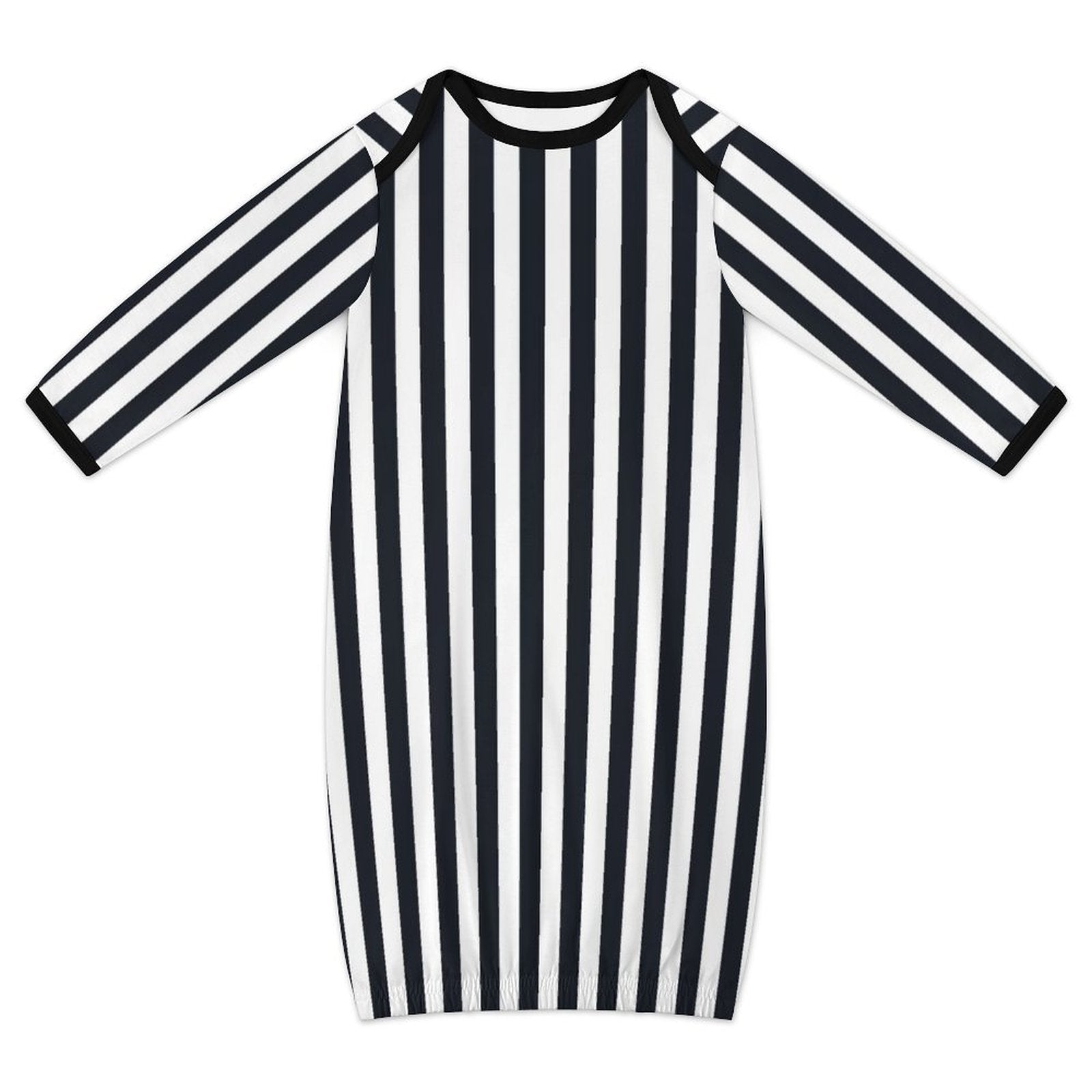 This baby gown Is the perfect thing for late night changes while keeping your baby snug. It features a goth standard: black/white stripes. These baby gowns are made to order, so please allow up to a month for delivery. If you order additional items, they will be shipped separately.