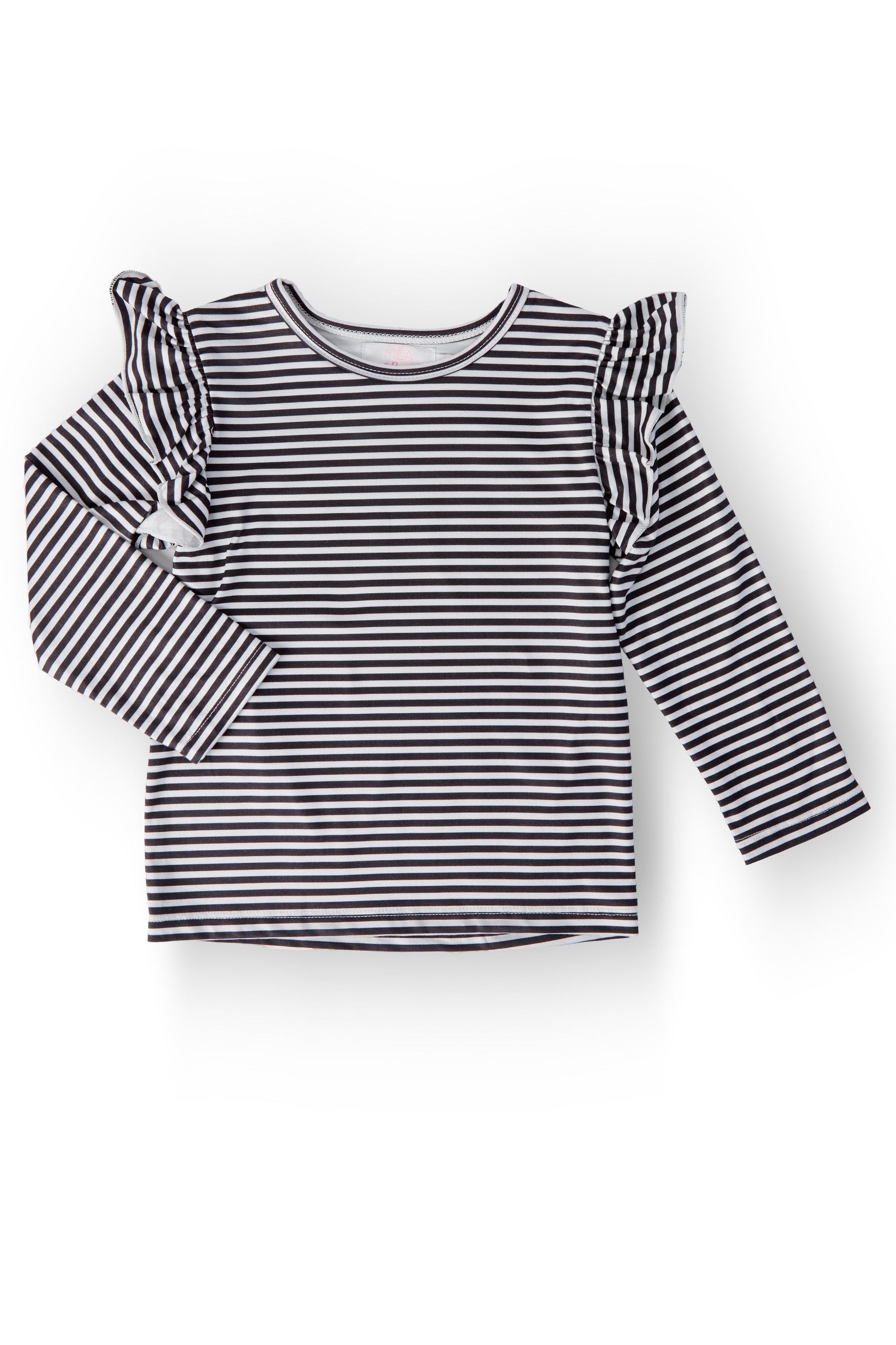 Black & White Stripe L/S Ruffle Tee