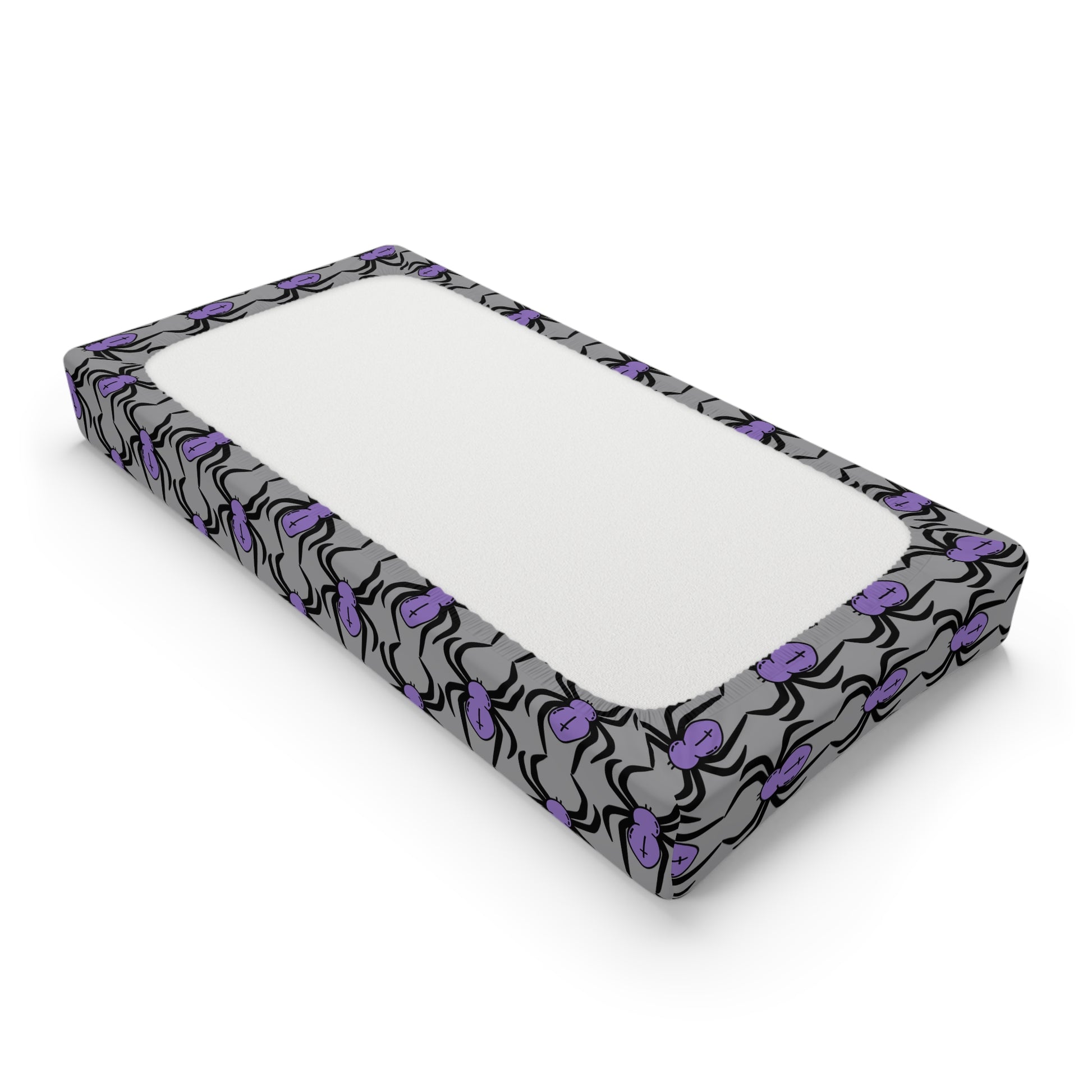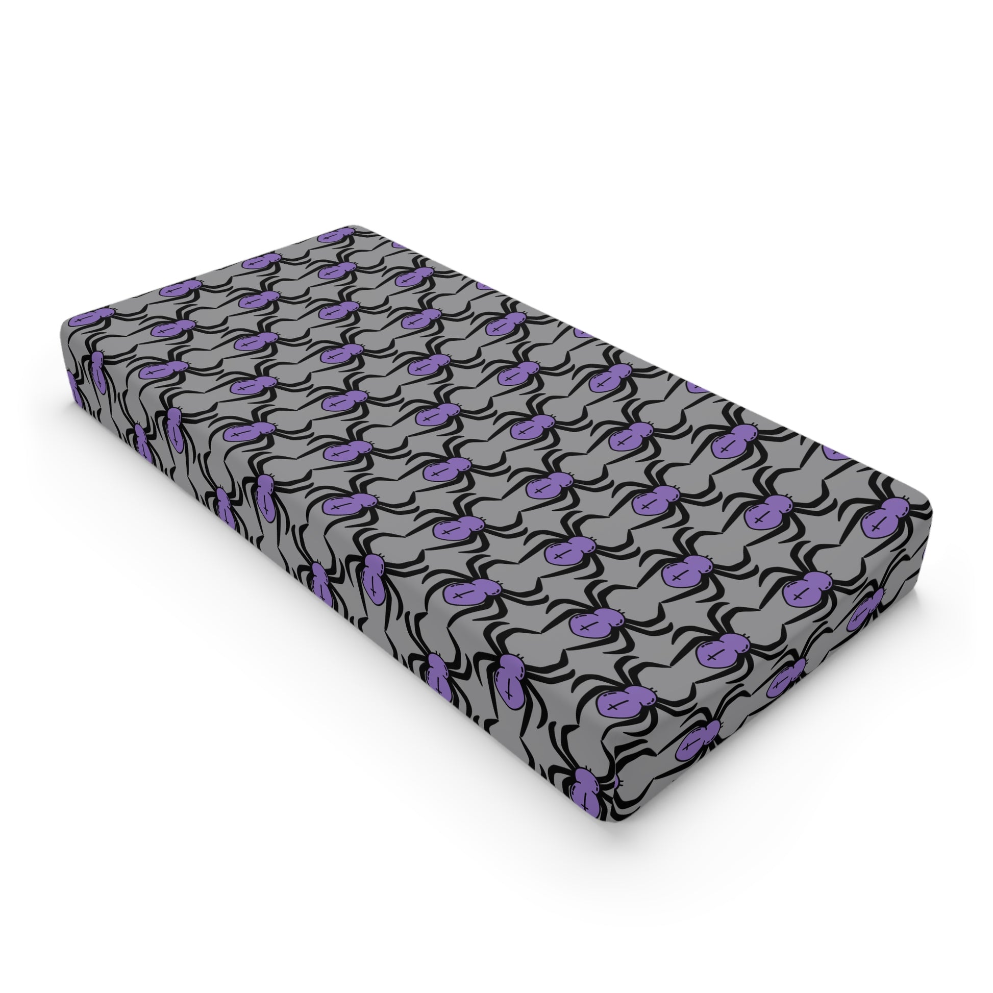 Spidey is so cute! The Gothic Spidey print is a fun purple/black print on a dark gray background. This changing pad cover is breathable and highly durable as it's made from 96% jersey knit polyester and 4% spandex. Around the edges, it features a reinforced elastic fitted lining that makes putting it on any standard diaper changing table a total breeze.