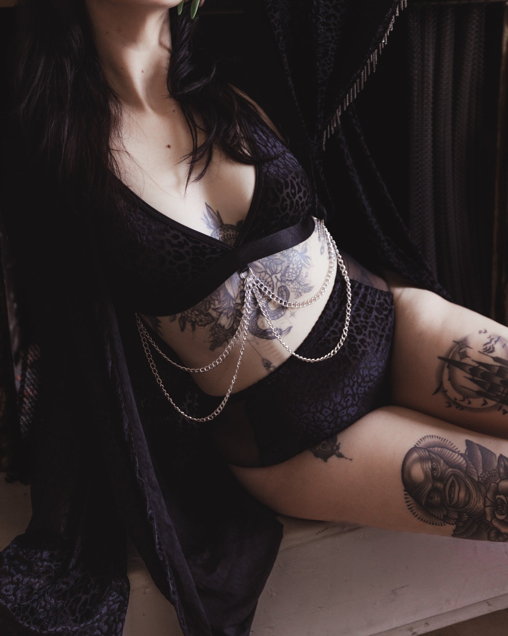 Chains take center stage in the Spellcaster Bralette, a bold statement piece for your alternative wardrobe. Striking chain accents drape over cheetah print burn out velvet fabric, creating a fierce, edgy silhouette that’s equal parts wild and enchanting.