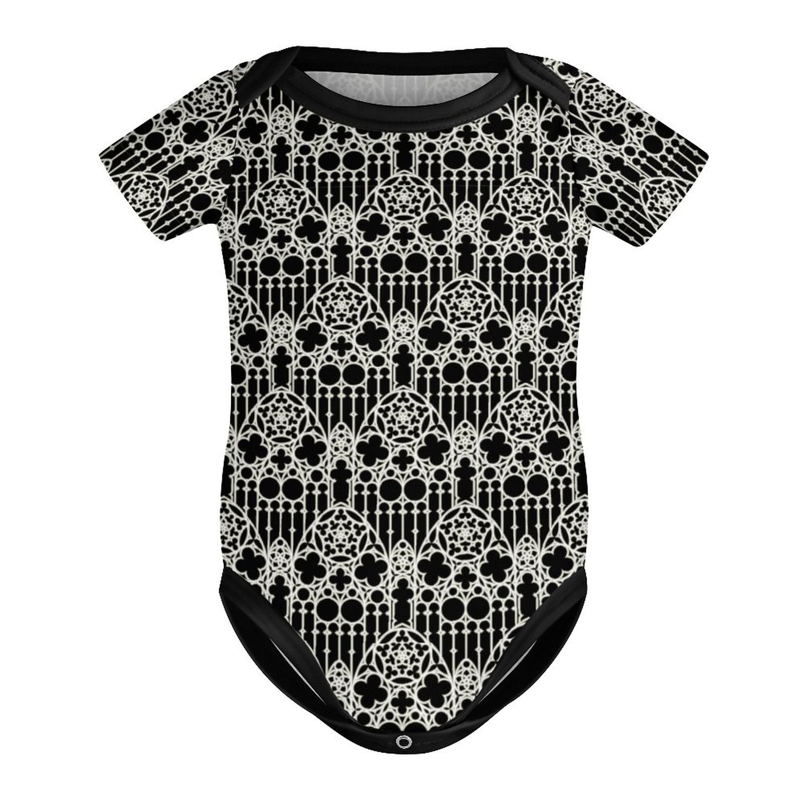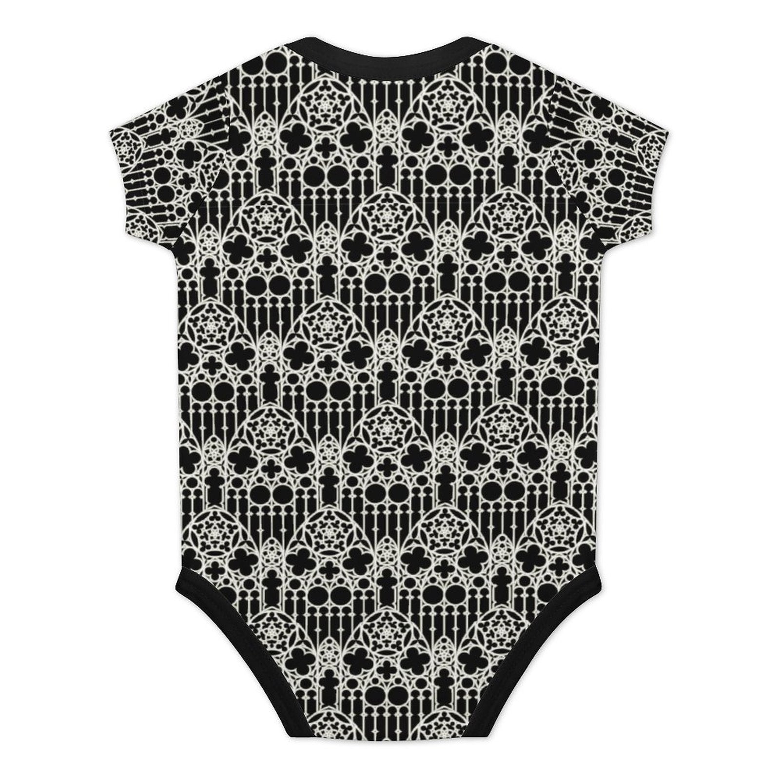 Cathedrals have some of the most incredible interiors, especially the elaborate windows. This onesie is printed all over with a cool cathedral window pattern with contrasting black details. These baby onesies are made to order, so please allow up to a month for delivery. If you order additional items, they will be shipped separately.