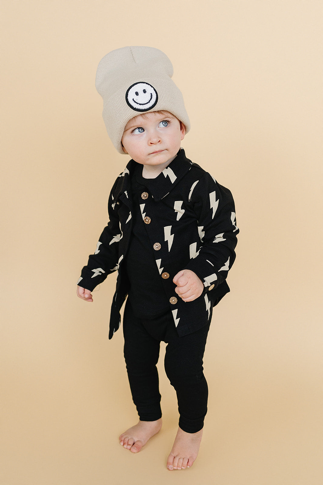 It’s shacket season! Made from soft cotton, this piece is perfect for layering or wearing on its own. With a functional button closure at the front, you can effortlessly transition from casual to dressy, making it a versatile addition to your wardrobe. Pair it with one of our cotton lounge sets and a smiley beanie to complete the look! Available in sizes from newborn to 9Y.