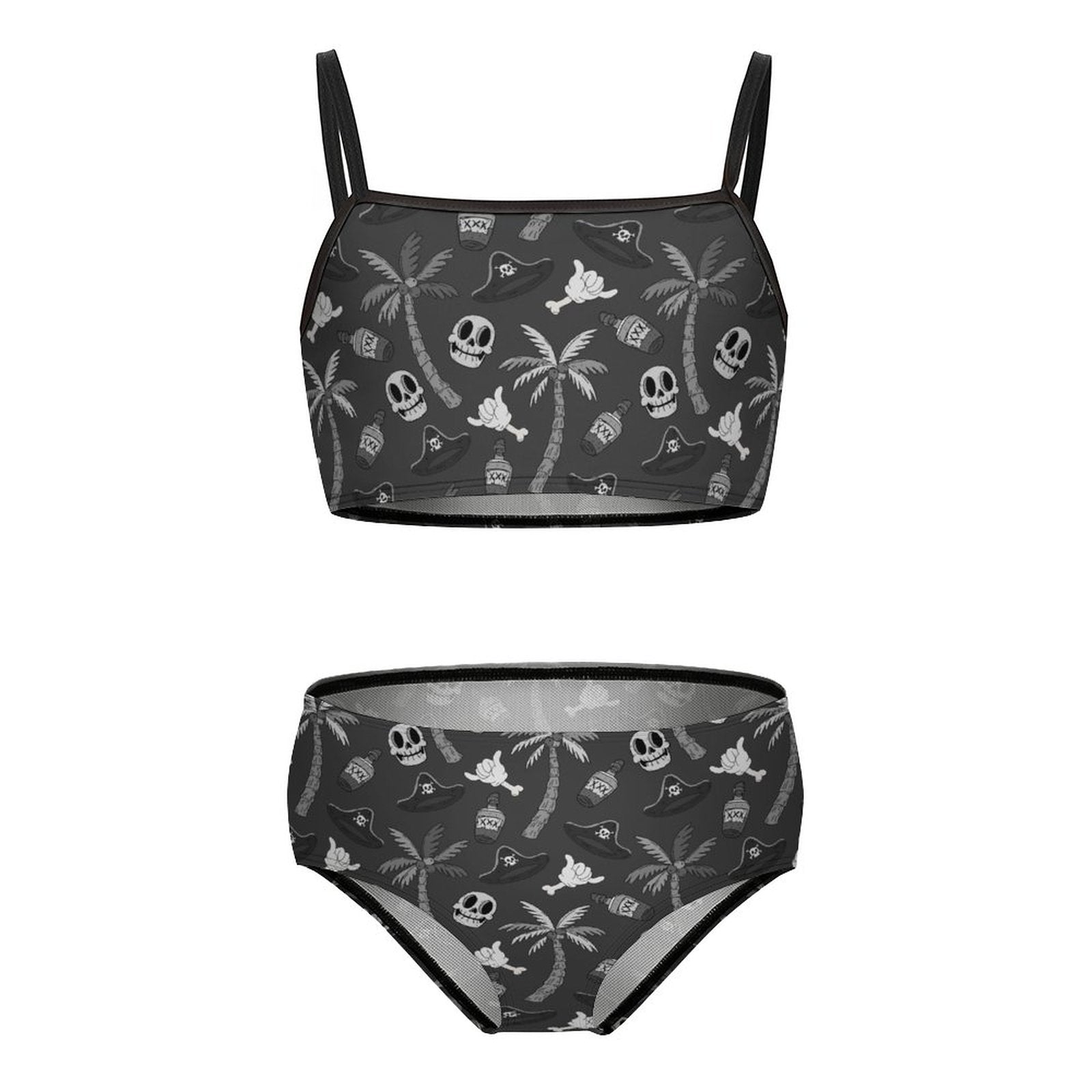 This print screams tropical, but make it goth. This adorable but functional 2 piece swimsuit is perfect for fun in the sand and sun. This bathing suit is made to order, so please allow up to a month for delivery. If you order additional items, they will be shipped separately.